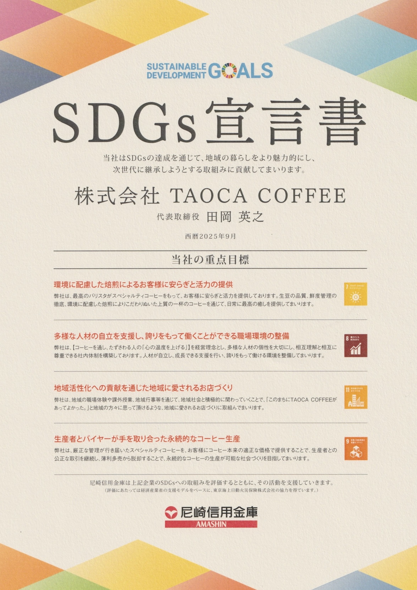 今後も、SDGs宣言書に基づく取り組みを一つずつ着実に進め、その進捗や見直しについても、可能な限り透明性を持ってお伝えしてまいります。